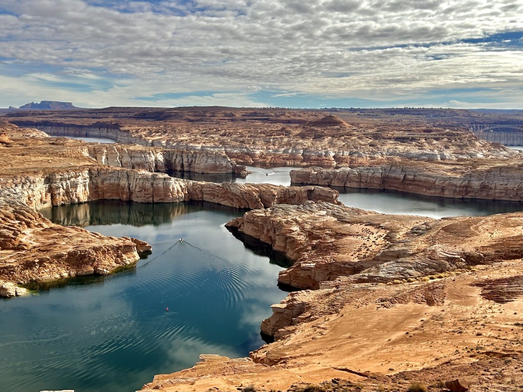 The below picture is probably my favorite picture I took of this entire trip. I know there are more iconic shots of Lake Powell, there’s that one Instagram hike that I will obviously be doing someday, but this to me was perfect. The clouds. The color of the water. The dam and bridge in the background. The two boats heading for each other. It was like a dream.