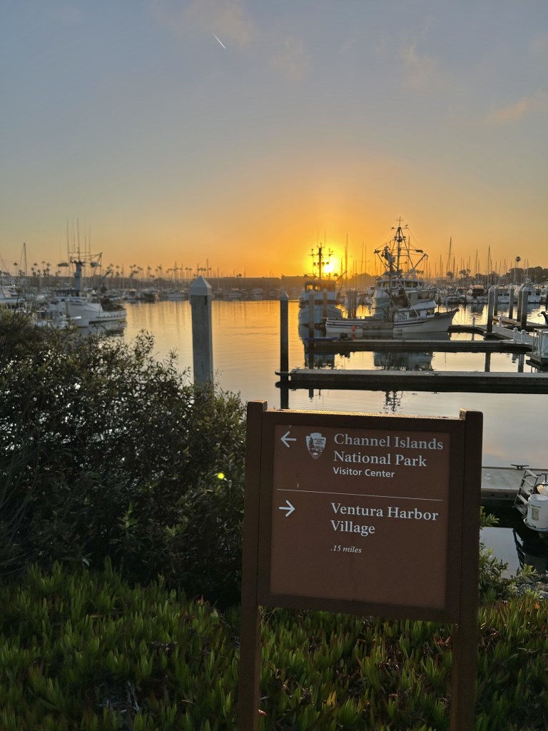 This particular ferry leaves from Ventura Harbor, about an hour and a half drive from LA. So we got up at the crack of dawn and made the sunrise drive over. And it was absolutely beautiful to hang out on the beach at sunrise as we waited for our boat.