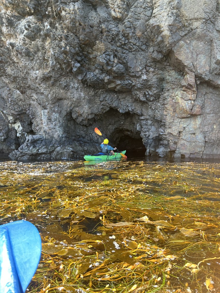 Our guide would go into the caves first to make sure the water levels were safe (especially because of the rough seas) while we hung out on top of the kelp and held on to the roots to keep us in place. It actually did a good job of holding us in place while we waited.